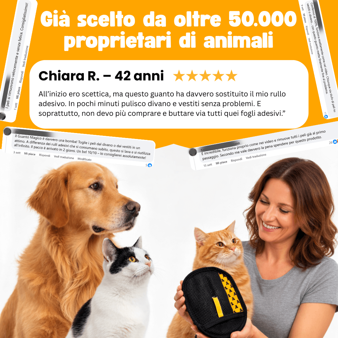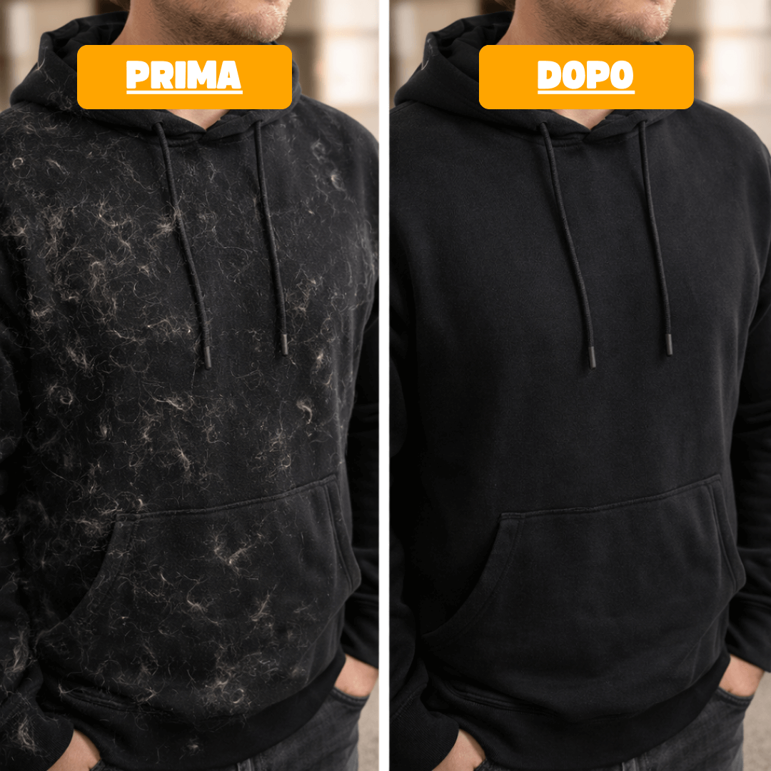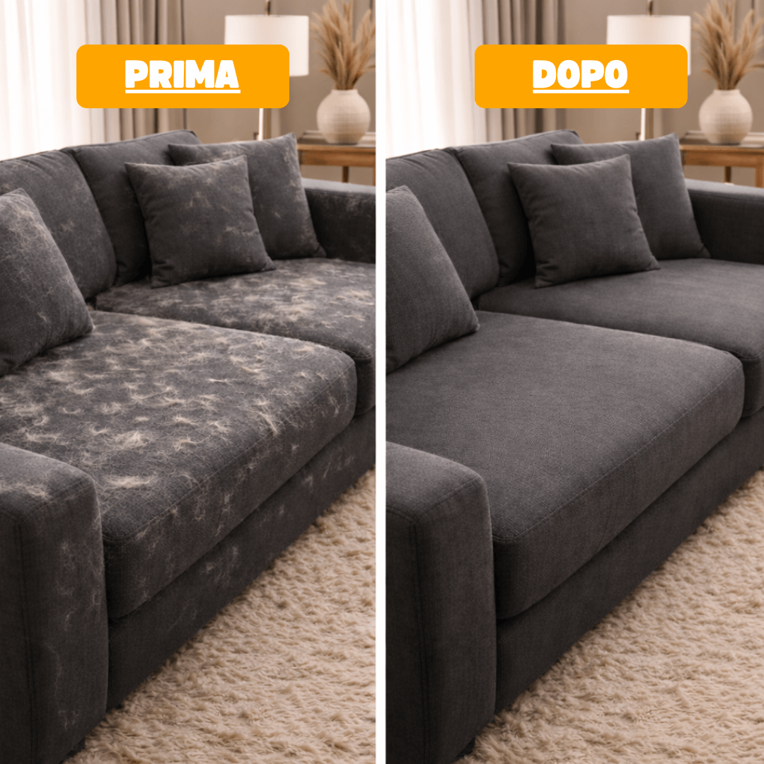 The glove removes hair in seconds. On the sofa, on clothes, or even directly on your pet.